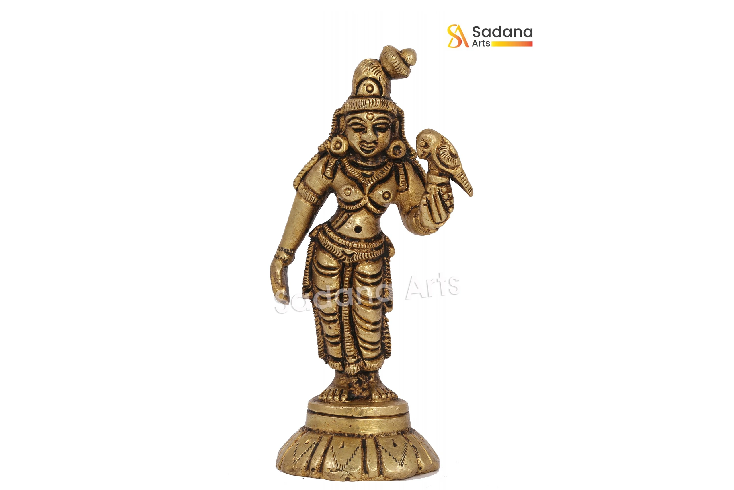 A brass idol of Andal (also known as Godadevi) is a sacred representation of the only female Alvar saint in the Sri Vaishnava tradition. She is revered as an incarnation of Bhudevi (the Earth goddess) and a great devotee of Lord Vishnu.