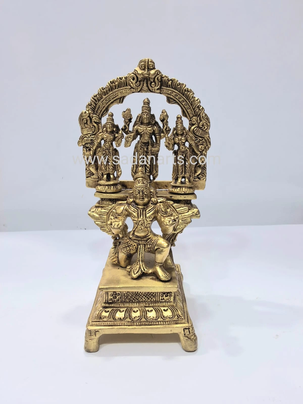 perumal sridevi bhudevi with garudha vahanam made with brass materials height 7″inches,weight-1.500kgms.